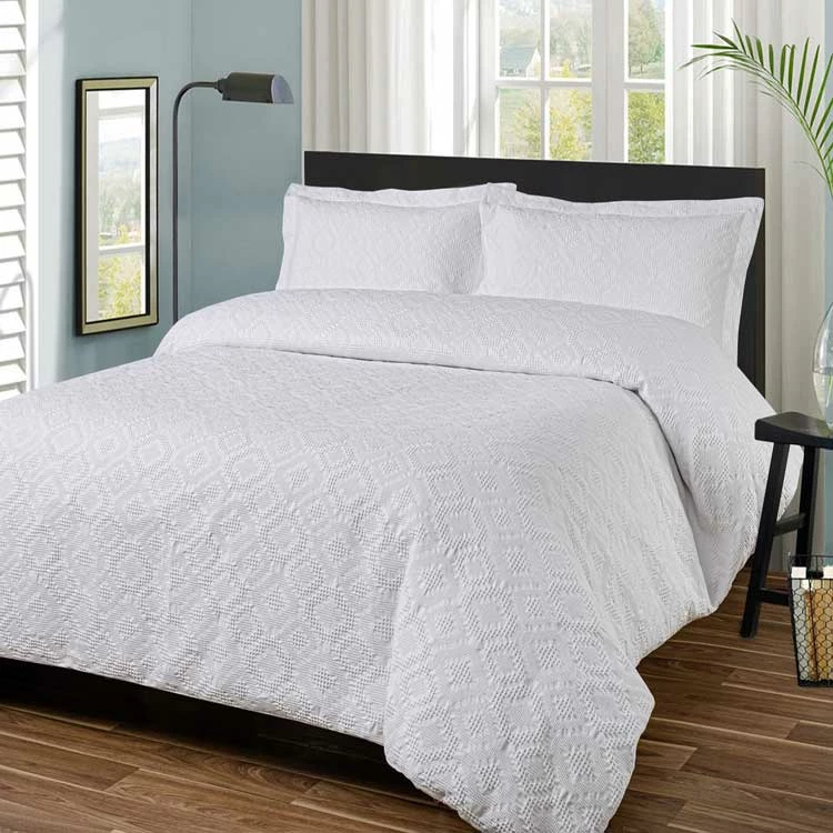 Made in PortugalJacquard Fabric100% Cotton280GSM WeightCover Closes with ButtonsSet Includes PillowcasesColours: White
