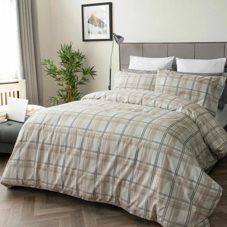 Check Cotton Rich Luxury Duvet Cover Sets offer a simple and smart design in neutral shades of beige and soft grey.