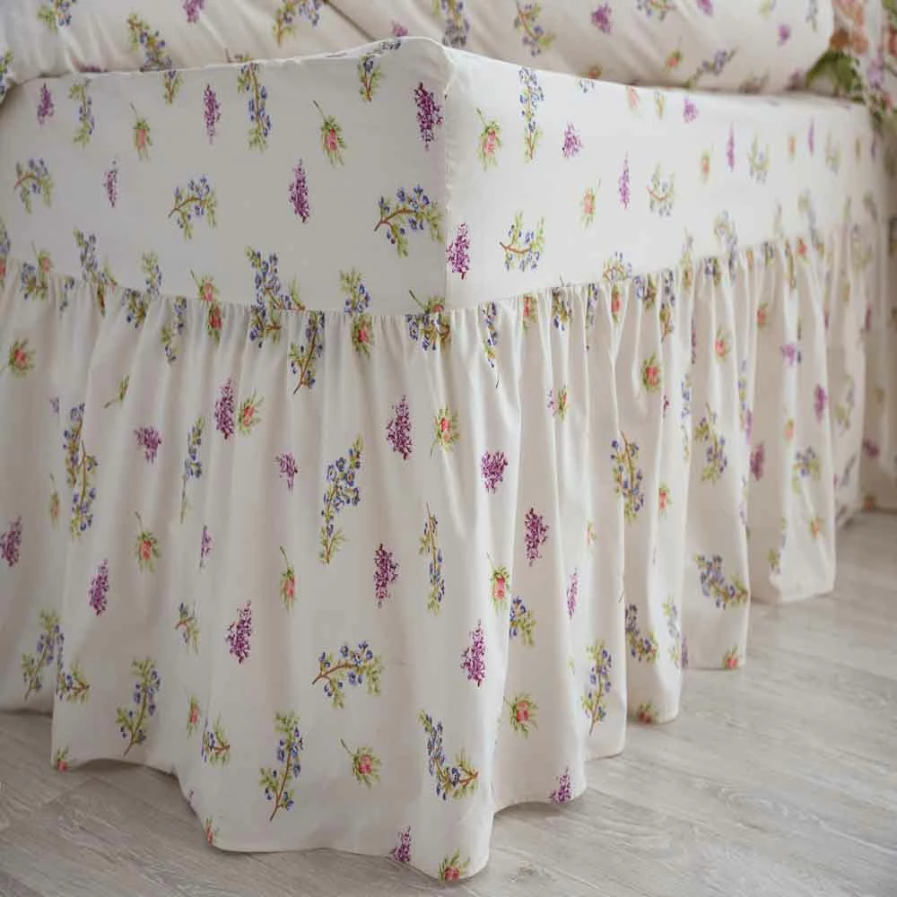 The fitted valance comes with a 7″ fitted sheet part and a 16″ drop on the stunning frilled valance part.