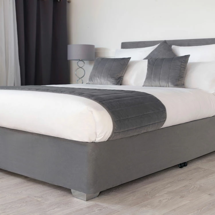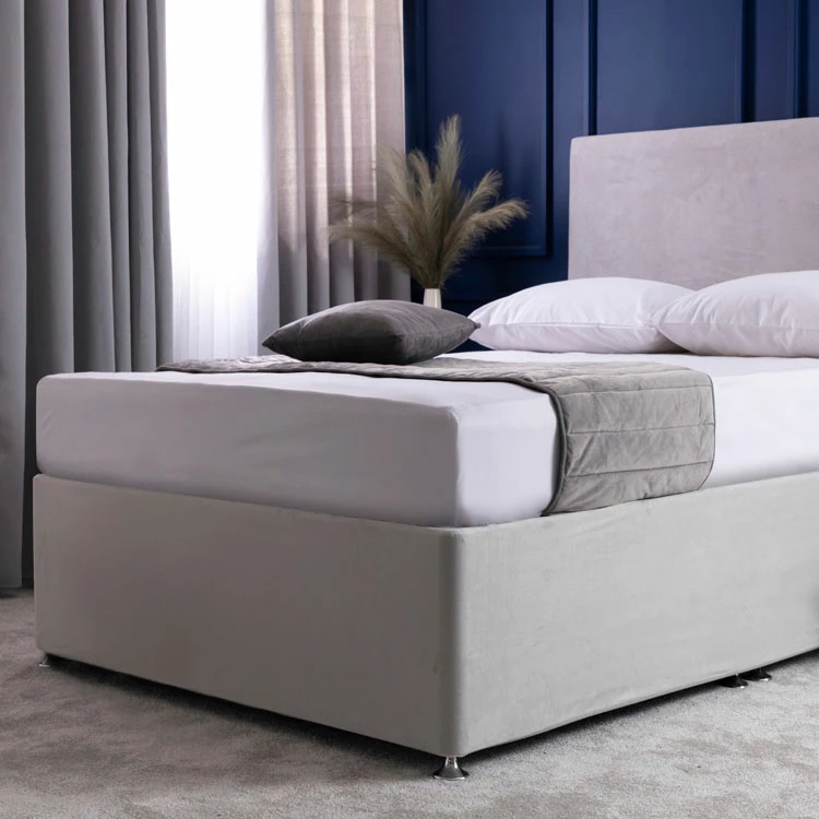 Are you looking for a great way to change the look of your divan? The traditional valance in the same colour as your bedding can look a bit dated now, most new bed bases come with a smart velour finish in fashionable hues of grey, black and even much brighter colours depending on your bedroom décor or your mood. So what can you offer I hear you say! Well we have the latest technology, the bed base wrap. Just think of it as a giant band of material that covers the divan base without you having to remove the mattress, ideal if your mattress is big and heavy.