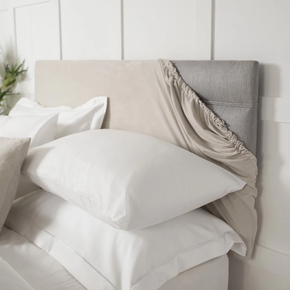 Our Faux Suede Headboard Wraps in white, charcoal and linen will help liven up your old headboard.