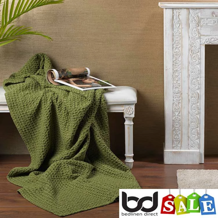 Throw: 140cm x 180cmHoneycombed WaffleMade in Portugal100% CottonHem Finish370 GSMMachine WashableColours: Green, Blue, Grey, Mustard, Natural, Pink