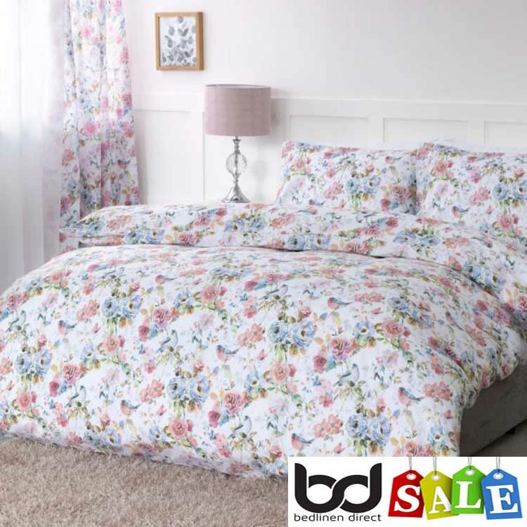 Secret Garden polycotton duvet cover sets and matching curtains feel at nature with pretty flowers and wildlife.